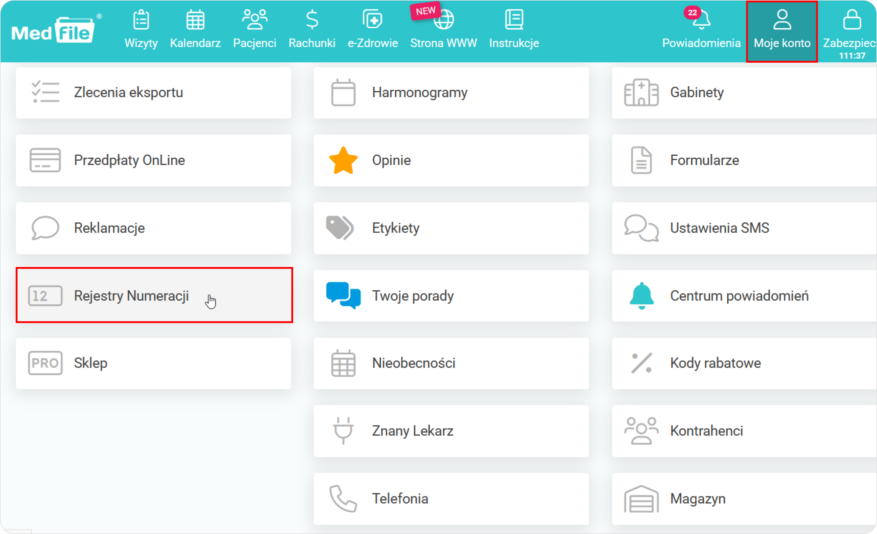 Z perspektywy Mojego konta, przechodzimy do zakładki „Rejestry Numeracji”.