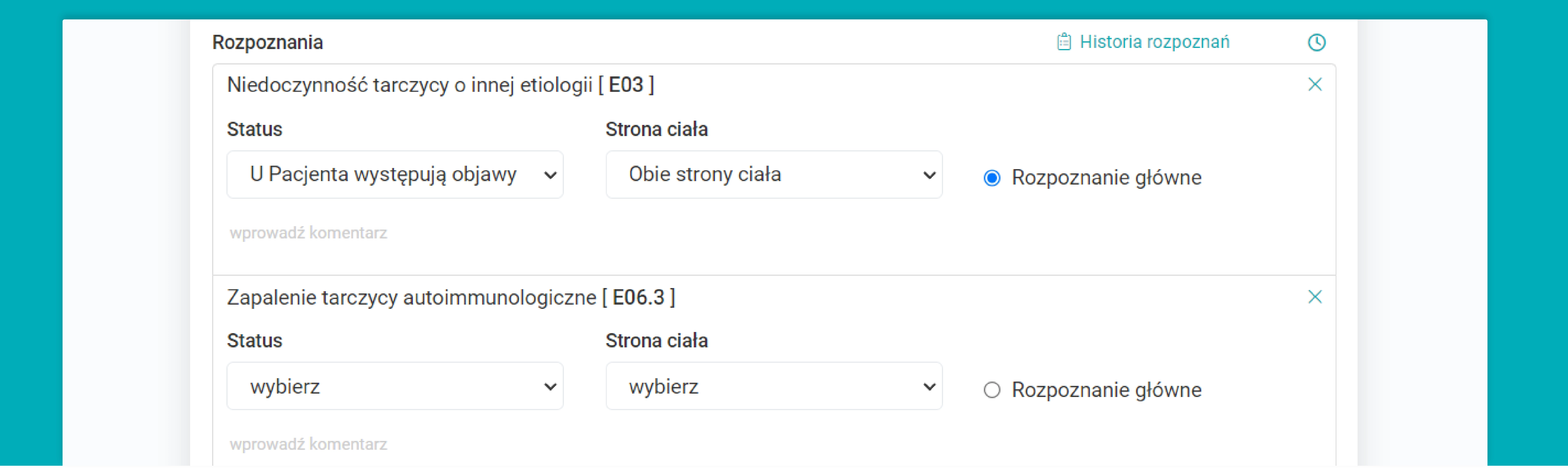 Podczas wykonywania badania kluczową kwestią pozostają rozpoznania, które są niczym innym jak kodami ICD-10. Pomagają one specjalistom usystematyzować choroby oraz schorzenia pacjenta tak, aby podczas przyszłej wizyty, wiedzieć co zostało zdiagnozowane pacjentowi.