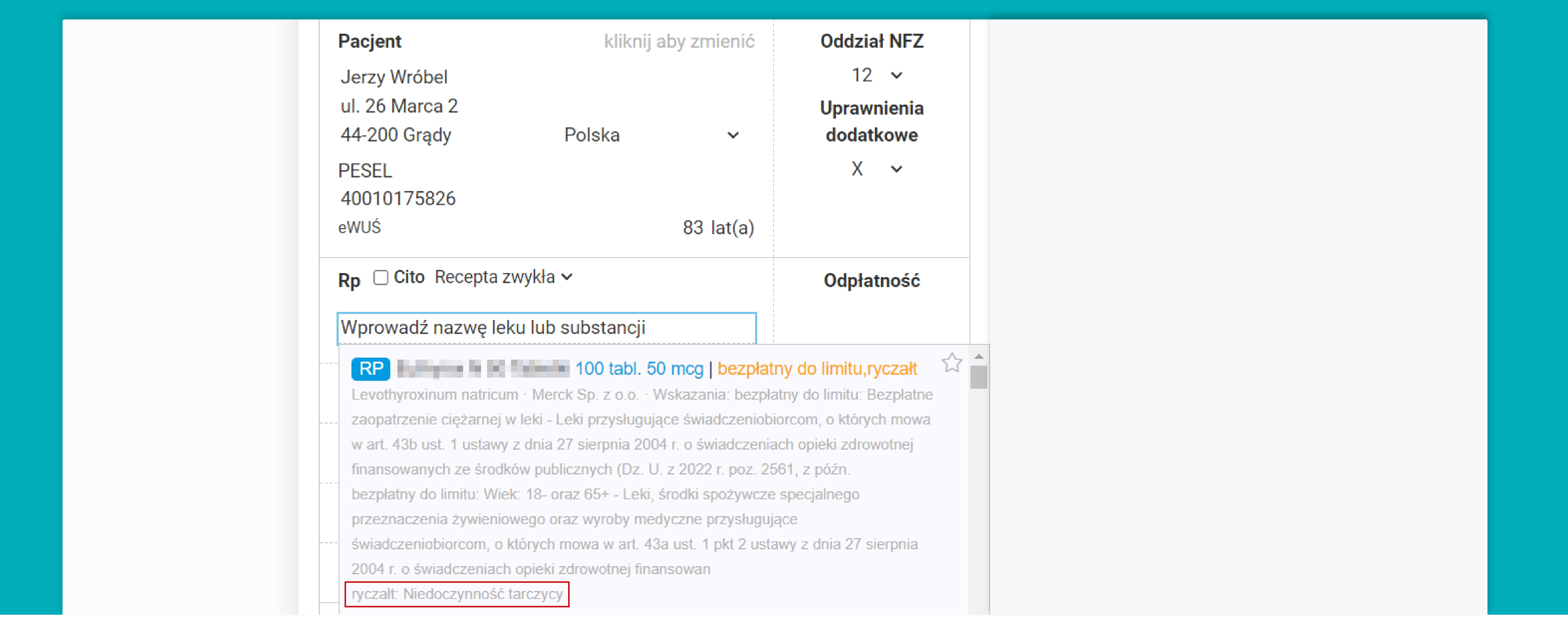 Wszystko tak naprawdę zaczyna się w karcie wizyty, w której należy uzupełnić odpowiednie rozpoznania. To właśnie dzięki nim możliwy będzie następny krok podczas wystawiania recepty.