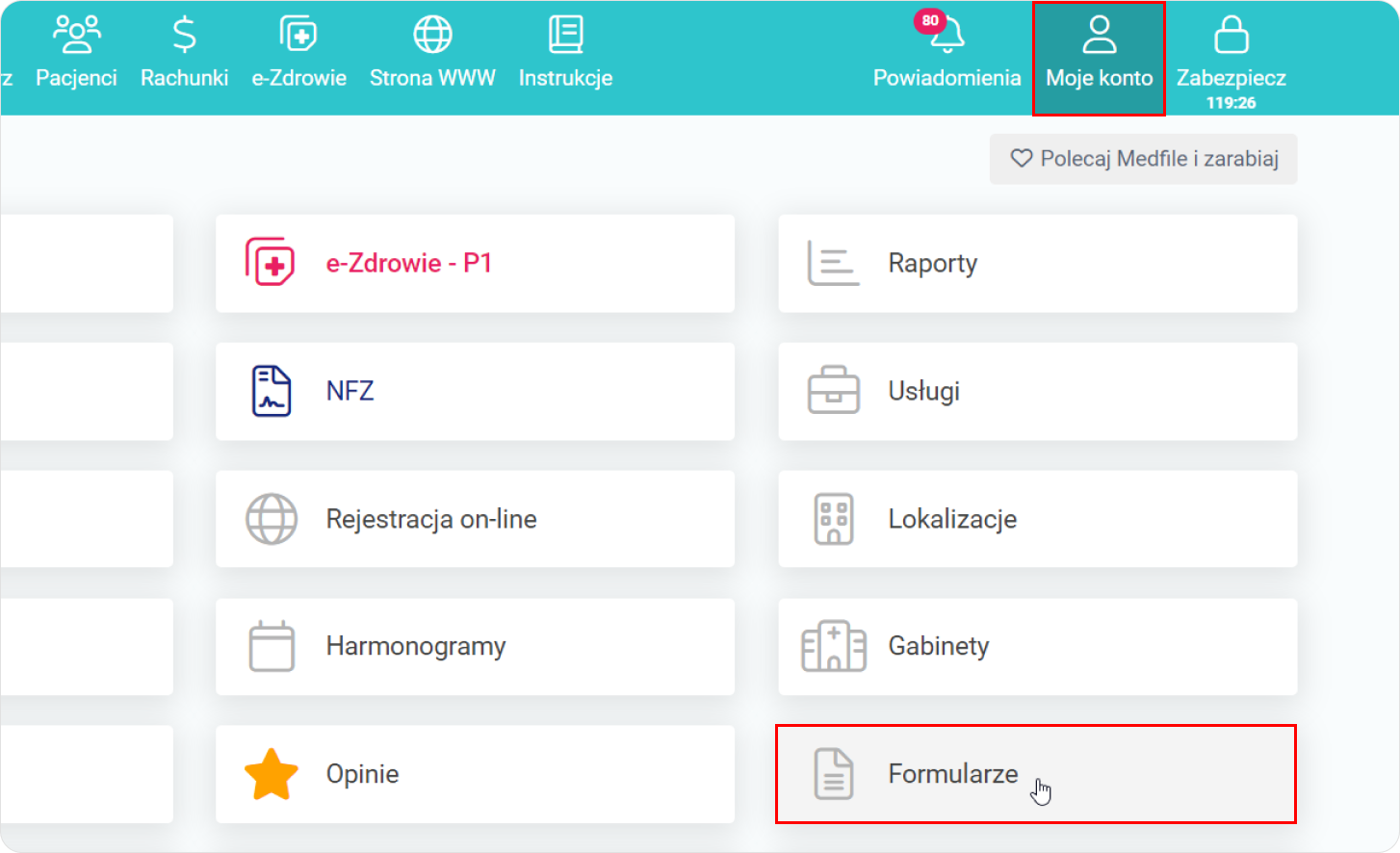 „Moje konto”. - Wskazujemy na kafelkę