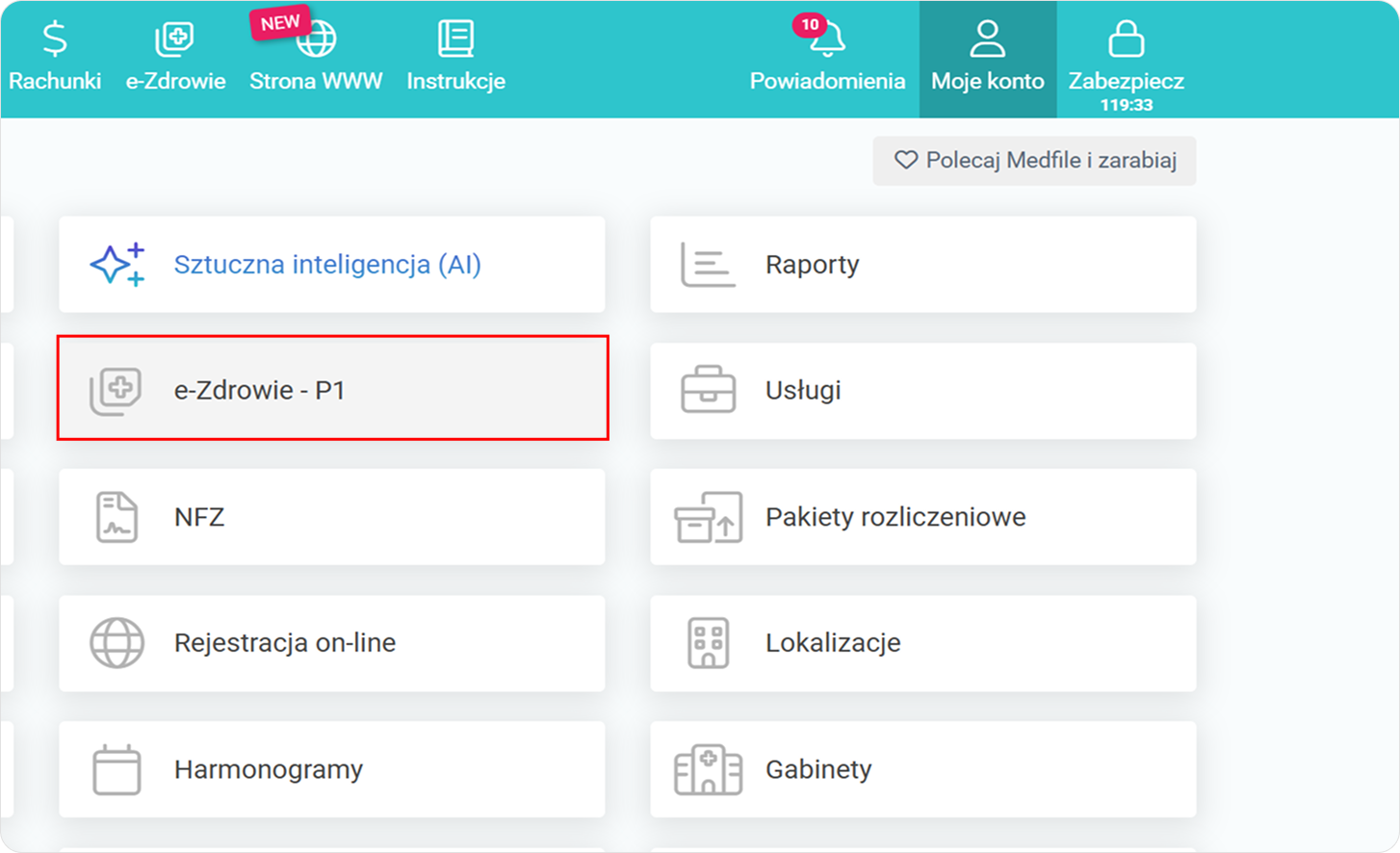 Z perspektywy Mojego konta przechodzimy do zakładki e-Zdrowie - P1.